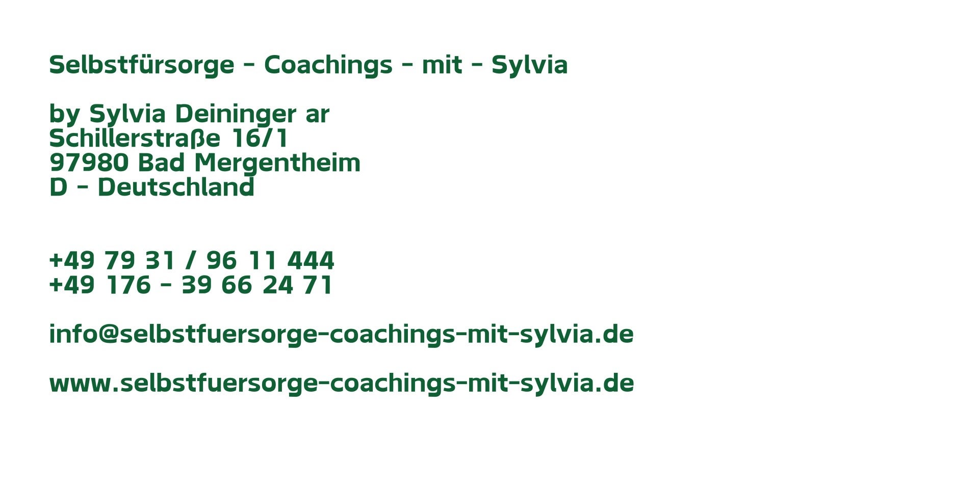 - Coaching Würzburg, Stuttgart, Künzelsau, Wertheim, Tauberbischofsheim, Rothenburg o. d. T., Main-Tauber-Kreis, Odenwald, Jagsttal, Heilbronn, Bad Mergentheim, Künzelsau, Mulfingen, Crailsheim, Creglingen, Miltenberg, Niederstetten,